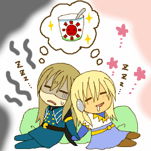 近い将来の、仲良しこよしなRJ-5とピオ10世です。二人でおねむ中…ですが、同じ夢を見ながら両極端な反応をしております(笑)